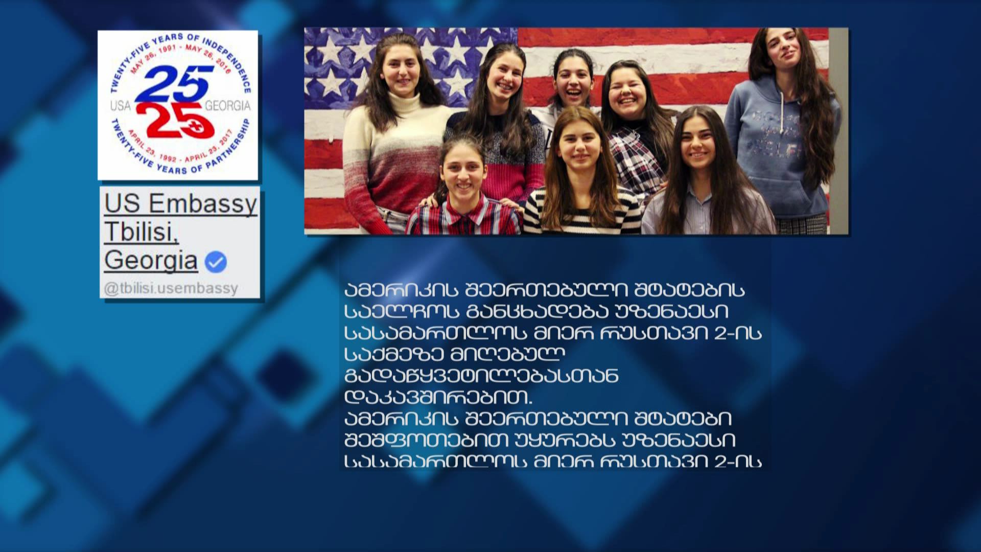 ამერიკის შეერთებული შტატები შეშფოთებით უყურებს უზენაესი სასამართლოს მიერ „რუსთავი 2“-ის შესახებ მიღებული გადაწყვეტილების შედეგს, რამაც შესაძლოა ფაქტიურად შეზღუდოს სამაუწყებლო მედიისადმი...