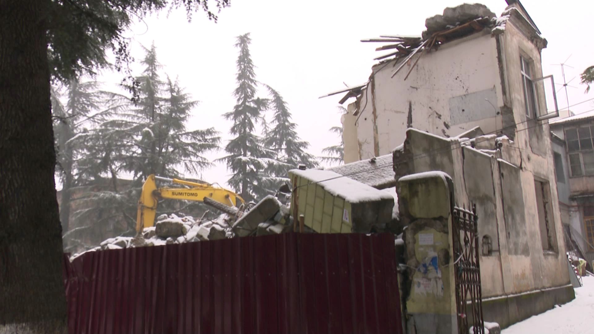 ბარათაშვილის 24-ში მდებარე შენობა სრულადაა დანგრეული. მძიმე ტექნიკა ადგილზე დღეს დილითაც მუშაობდა, თუმცა კომპანიის წარმომადგენლებმა სამუშაოები ჩვენი გადამღები ჯგუფის გამოჩენისთანავე...