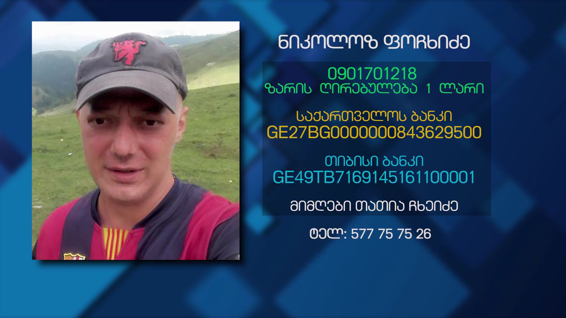 34 წლის ნიკოლოზ ფოჩხიძეს თურქეთის კლინიკამ ნერვული გარსის სარკომა დაუდგინა, მისი ჯანმრთელობის მდგომარეობა დღითიდღე მძიმდება. პირველ ეტაპზე სასწრაფოდ უნდა ჩაუტარდეს...