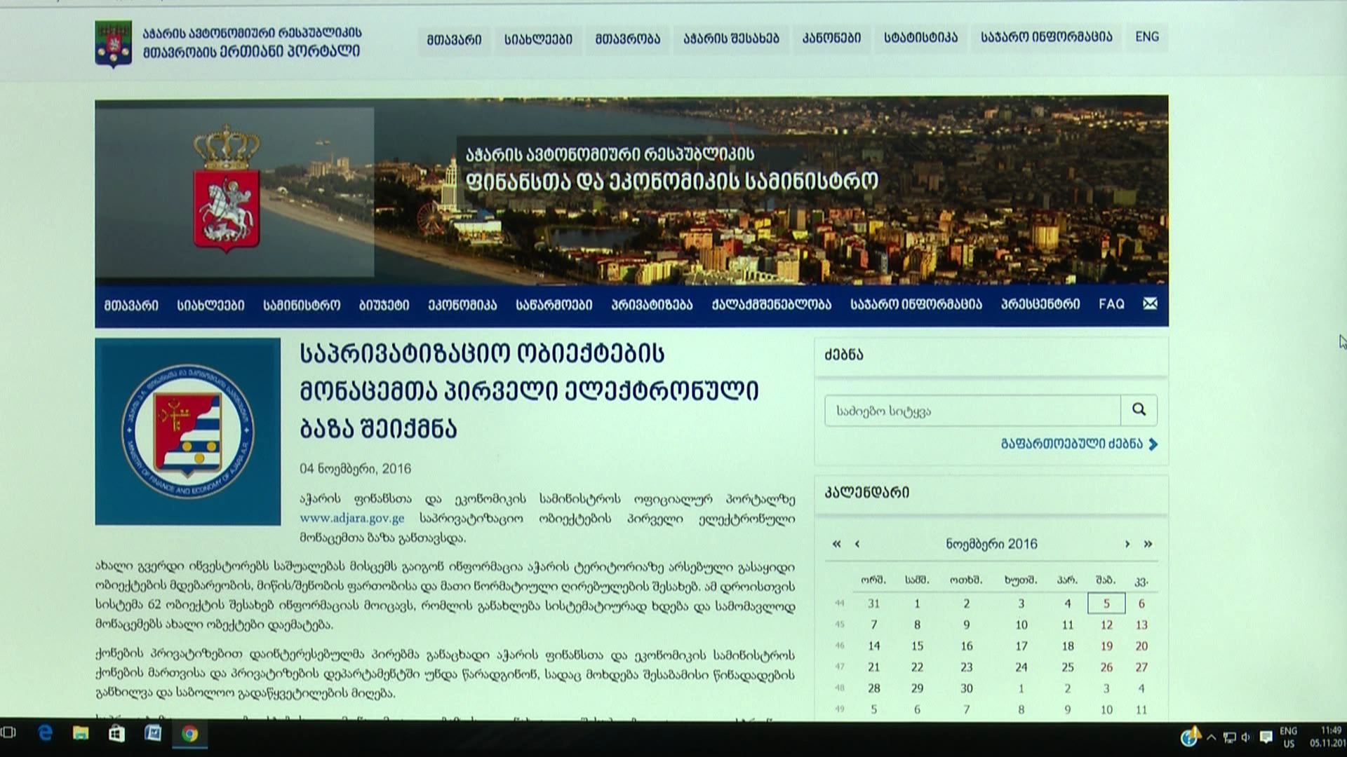 აჭარის ფინანსთა და ეკონომიკის სამინისტროს ოფიციალურ პორტალზე www.adjara.gov.ge საპრივატიზაციო ობიექტების პირველი ელექტრონული მონაცემთა ბაზა განთავსდა. ახალი გვერდი ინვესტორებს საშუალებას მისცემს გაიგონ...