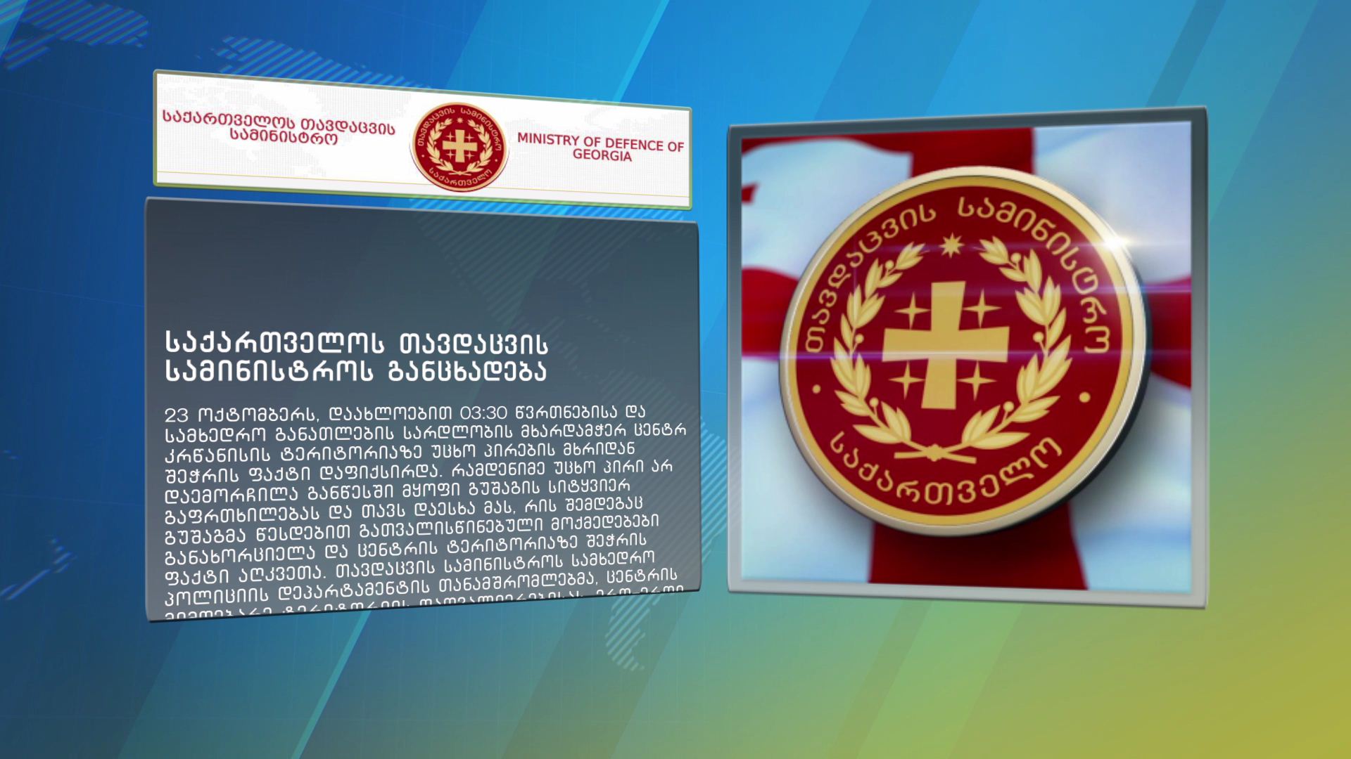 წვრთნებისა და სამხედრო განათლების სარდლობის მხარდამჭერ ცენტრ ”კრწანისის” ტერიტორიაზე უცხო პირების მხრიდან შეჭრის ფაქტი დაფიქსირდა - ნათქვამია თავდაცვის სამინისტროს მიერ...