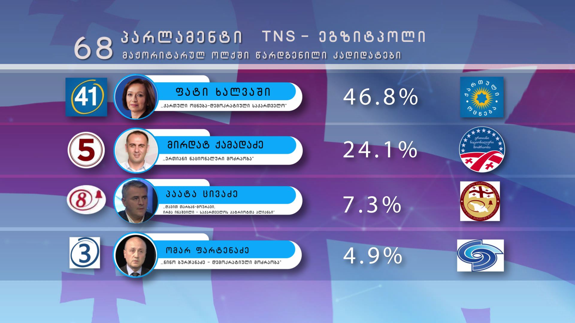 ახლა კი საქართველოს მასშტაბით ჩატარებული ეგზიტპოლების შედეგები 20 საათისთვის. პირველი 5 პარტიის მონაცემებს თქვენ ეკრანებზე ხედავთ. ეს არის საზოგადეობრივი მაუწყებლის,...