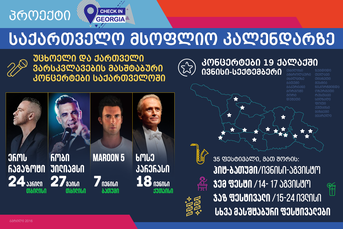 პროექტ "ჩექინ ჯორჯიას" ფარგლებში, საქართველოს ეროს რამაზოტი, რობი უილიამსი, ხოსე კარერასი ეწვევიან. პროექტთან დაკავშირებით, საქართველოს ვიცე-პრემიერმა, კულტურის მინისტრმა და ტურიზმის...