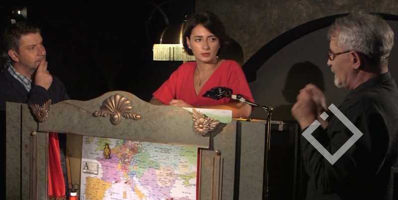 გადაცემა "ანტრაქტში" მოწყობილ სცენაზე საინტერესო, ატუალური მინი სპექტაკლი თამაშდება. წამყვანები - ბასა ჯანიკაშილი და ბესო კუპრეიშვილი, მოწვეულ სტუმართან ერთად სხვადასხვა ნაწარმოებზე საუბრობენ. ამ ნაწარმოებებში წამოჭრილ აქტუალურ საკითხებს განიხილავენ, რომელიც ჩვენს დღევანდელობას ეხება.